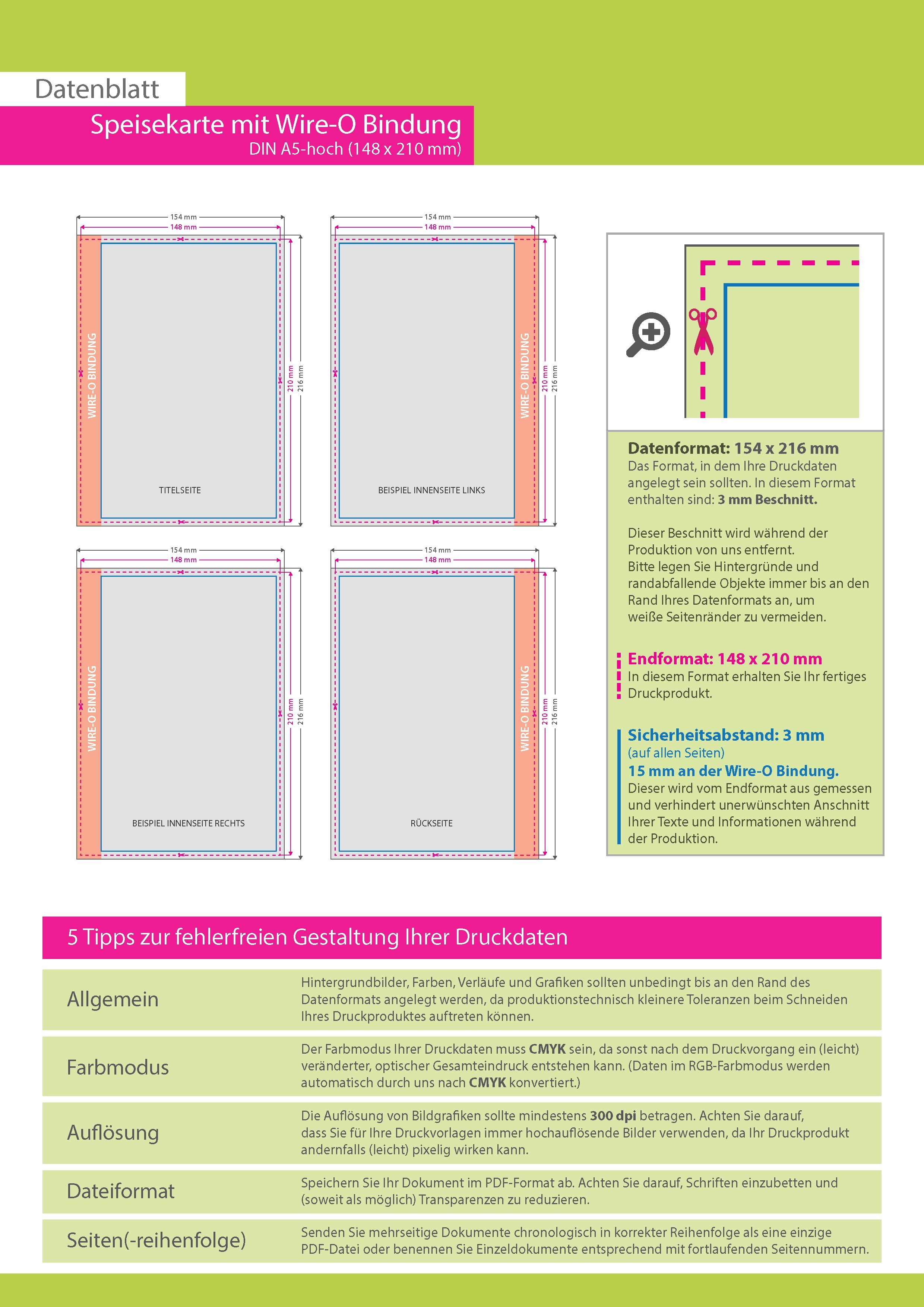Speisekarte mit Metall-Spiralbindung, Endformat DIN A5, 32-seitig