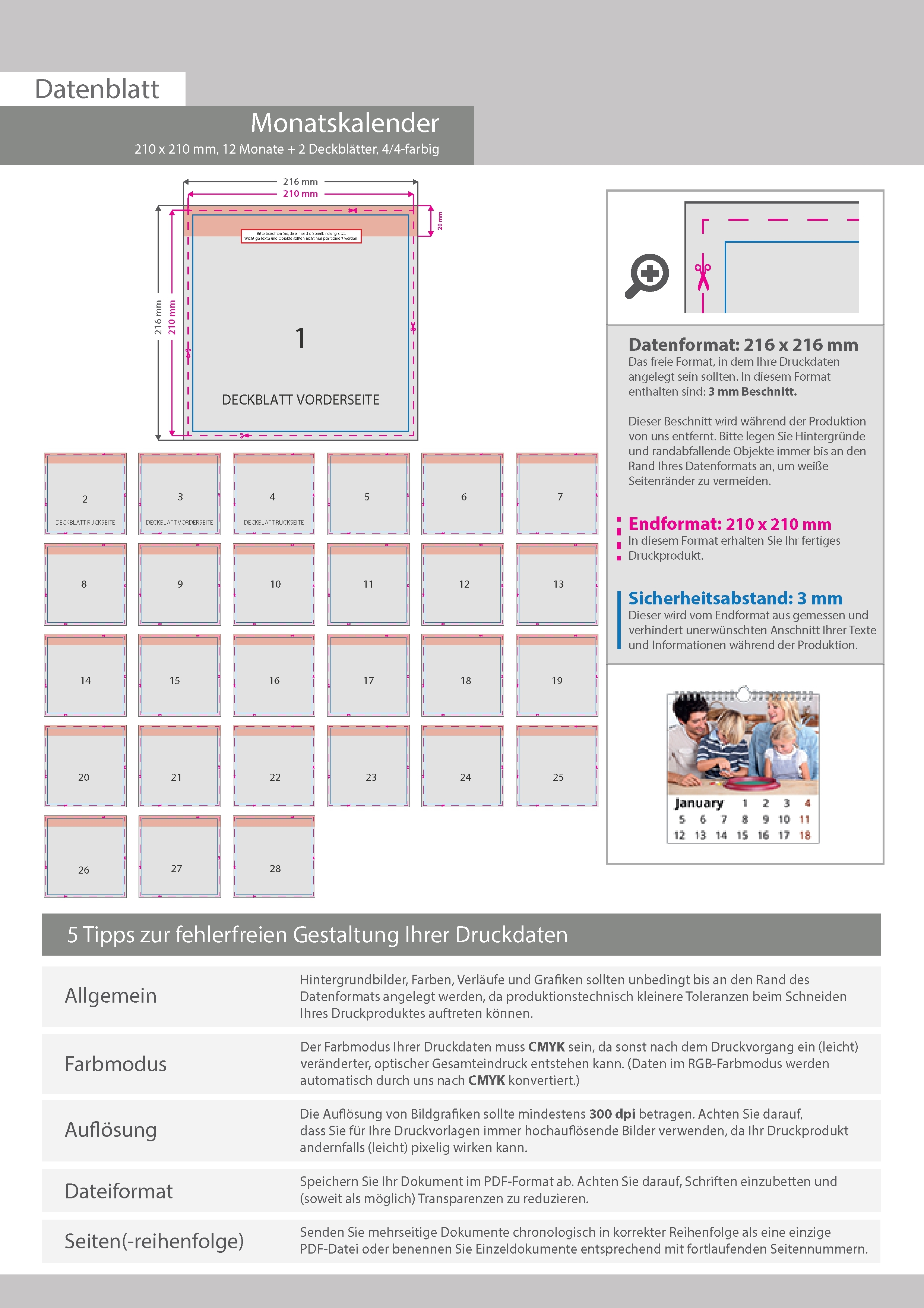 Monatskalender 14 Blatt (12 Monate + 2 Deckblätter)