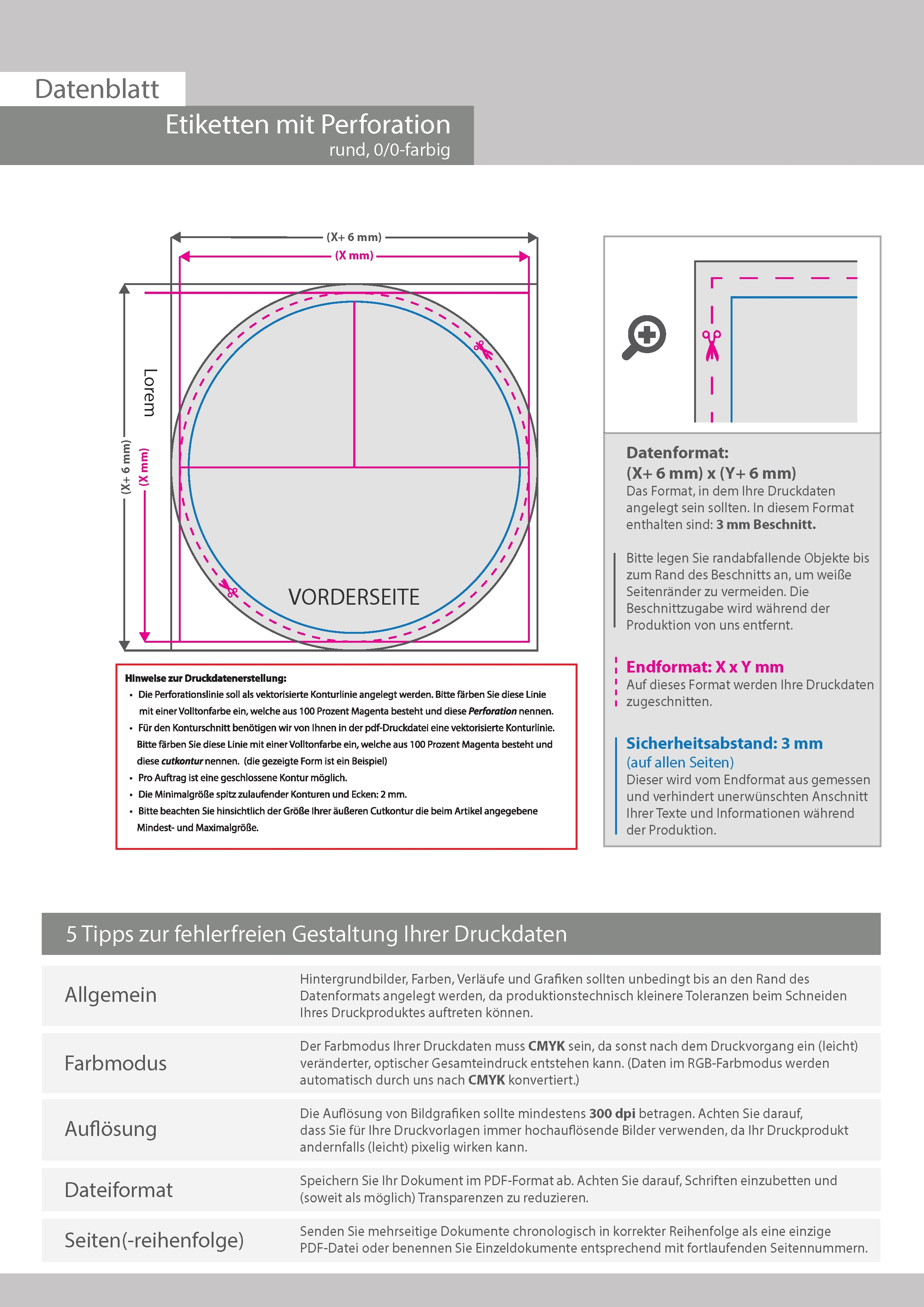 Hochwertige perforierte Etiketten, freie Größe rund 0/0-farbig